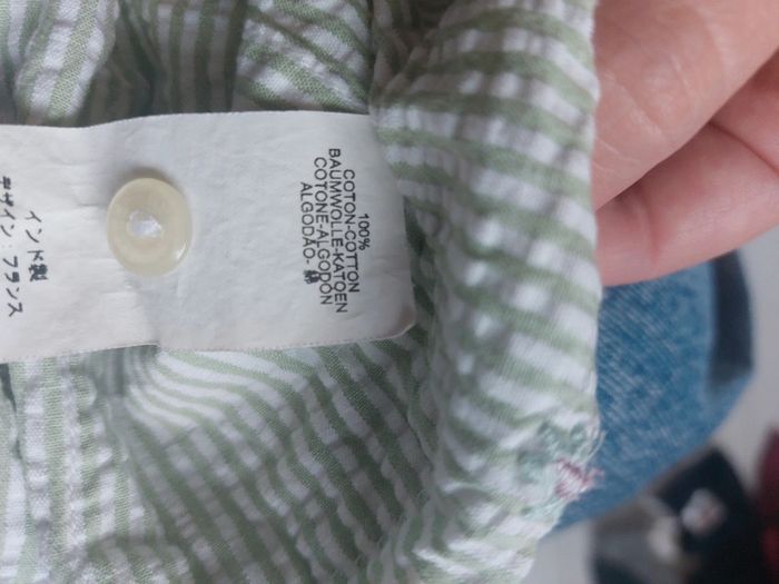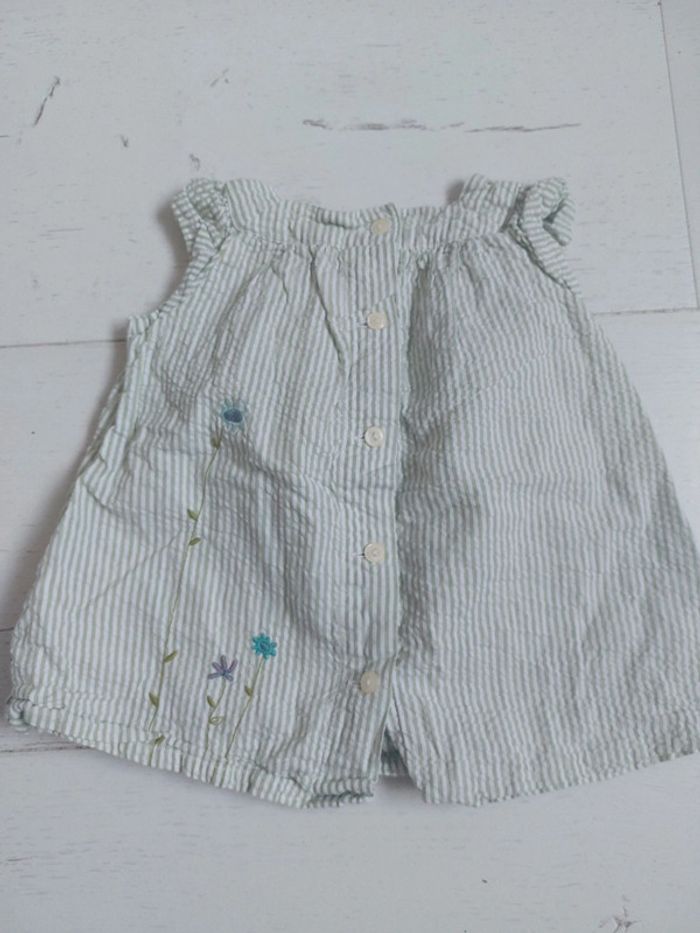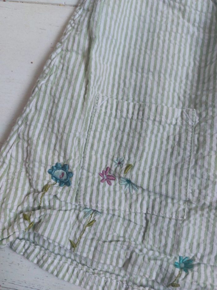 #victoireagrandi Blouse à rayures verte et broderie à fleur Petit Bateau Manches courtes Taille 6 mois 100% coton