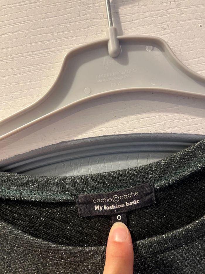 Pull fin en bon état noté taille 0 de chez cache cache qui correspond à un 34 normalement mais taille grand aisselles à aisselles :48 cm plus un 38