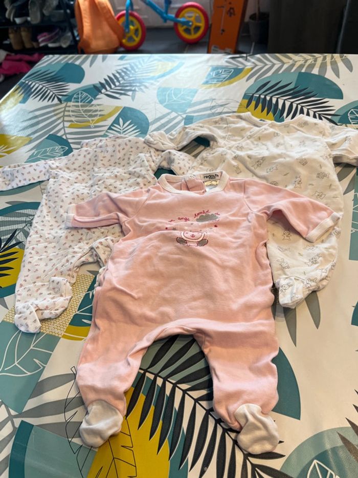 Lot de 3 pyjamas fin bébé fille 0 mois taille 50 sont en tbe diverses marques