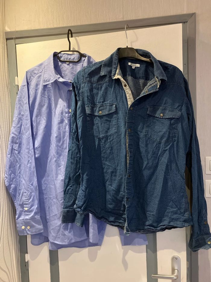 Lot de 2 chemises taille xl en bon voir tbe 2 marques différentes et j’offre une 3 eme en plus à quelques petites taches et à perdu de son banc. #elo6126hommetailleXL