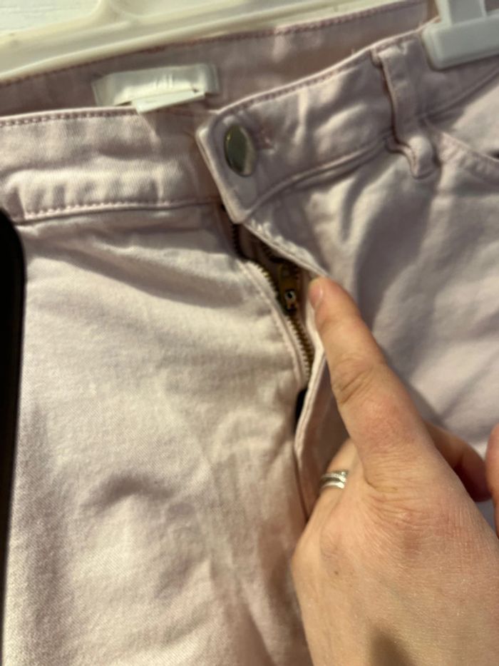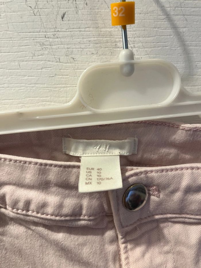 Short h&m en bon état mais à un fils tire derrière voir photos et une tache taille 40 tout cela est minime et se voit très peu longueur short 25 cm