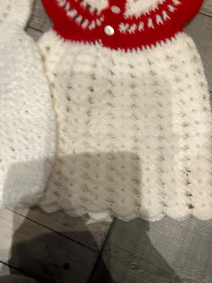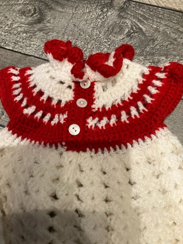 Robe et combinaison faites main sont en tbe mais peuvent comporter des petites imperfections car faites main correspondent à du 3/6 mois ou pour des poupons #elo6126fille3mois