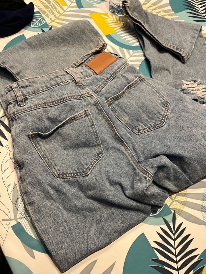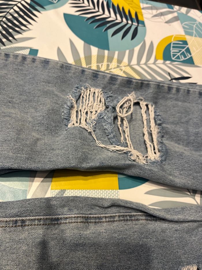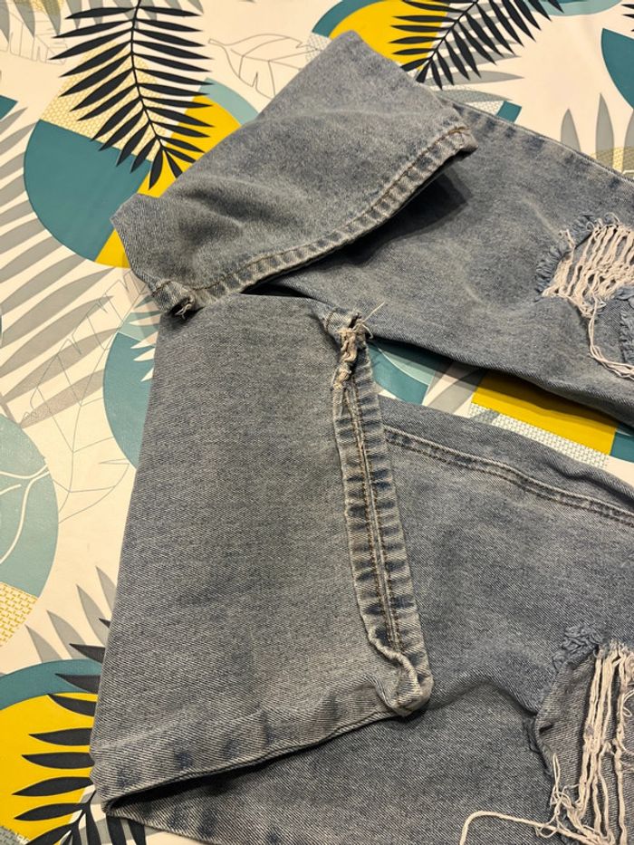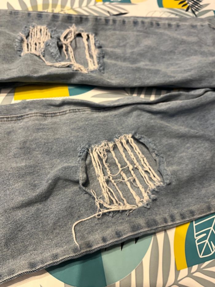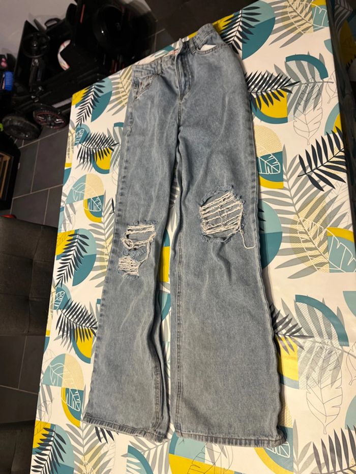 Jeans troué Jennyfer attention il a des taches sur le bas des jambes et je n’ai pas essayer de le détacher il est à jambes larges taille 34 je l’offre pour tout achat dans mon dressing mettez le avec un autre article et je déduirai les 1€