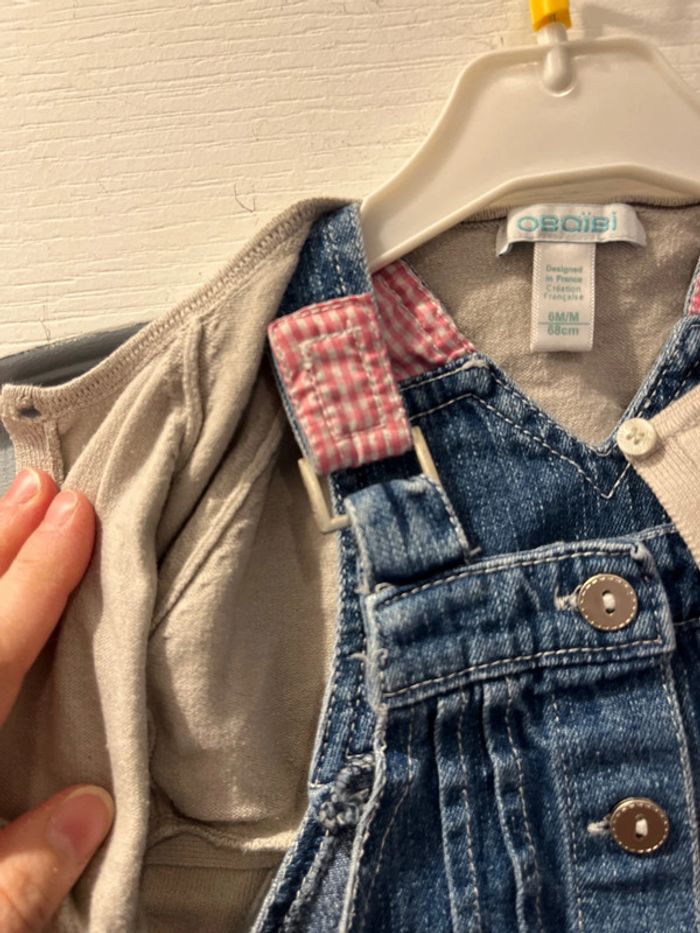 Jolie robe taille 6 mois en bon état sans marque avec un petit boléro marque obaibi