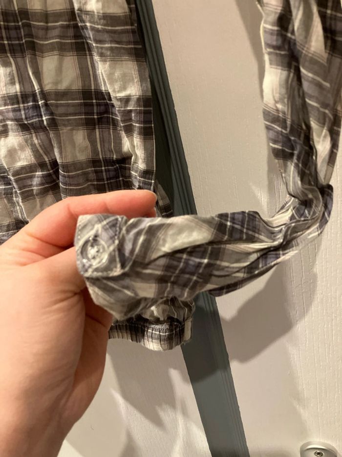 Chemise fine en bon état taille S elle est froissée désolé je déteste le repassage les manches peuvent se retrousser voir photo