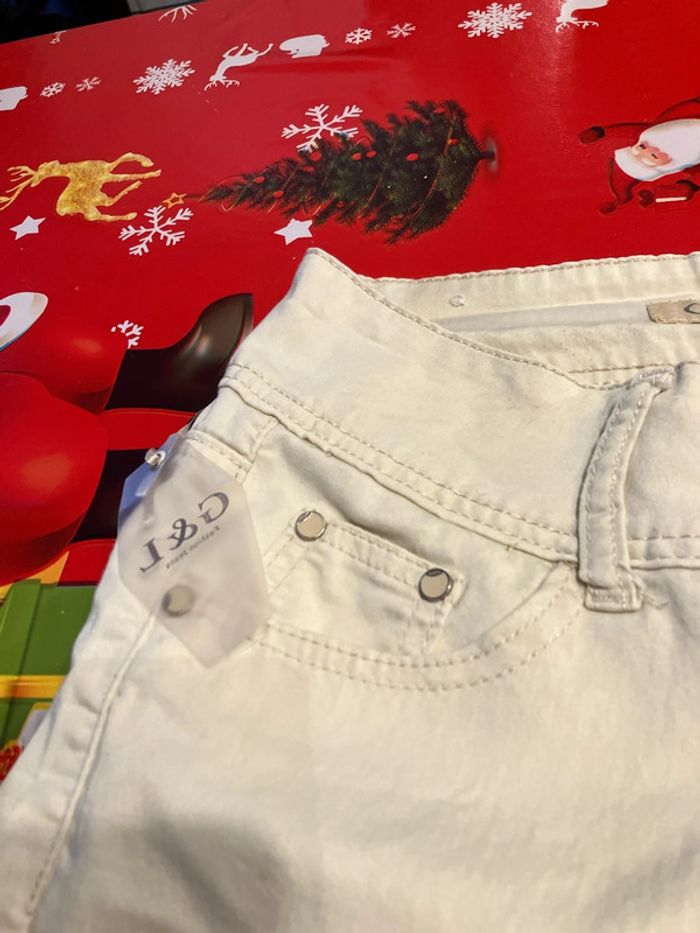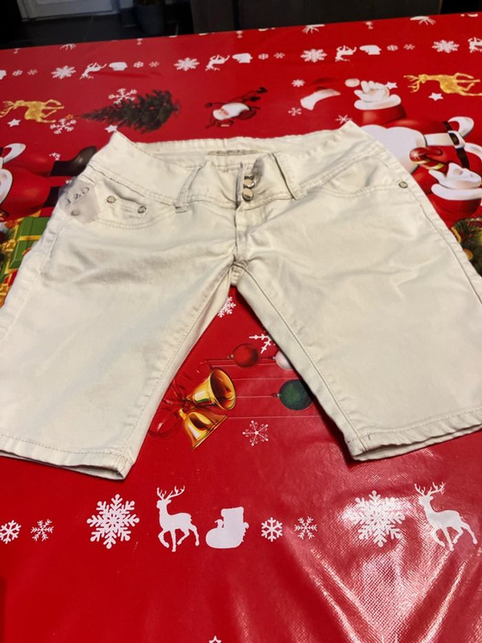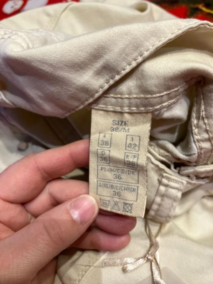 Short en tbe il y a encore l’étiquette dessus mais à déjà été passer une fois en machine à 3 minuscules taches qui se voient à peine voir photos taille 38