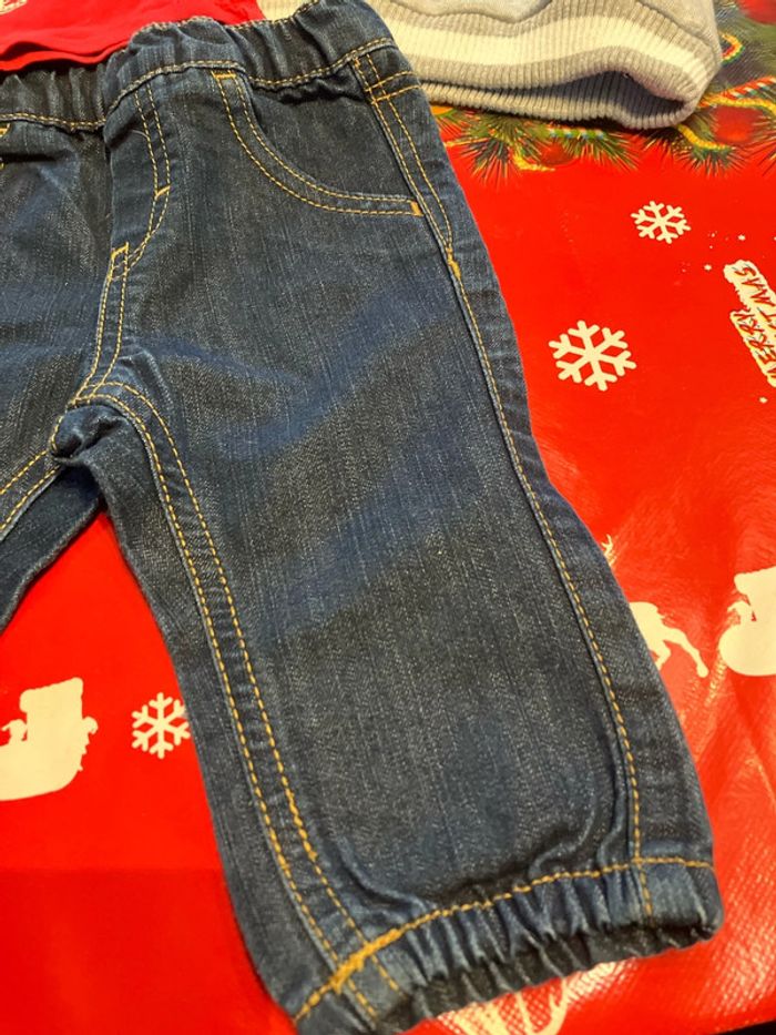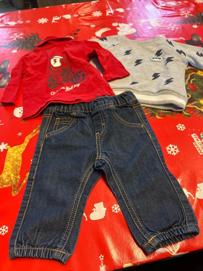 Lot 6 mois le pantalon est en bon état le sous pull est en tbe et le pull en bon état mais a un petit point de couture à faire diverses marques