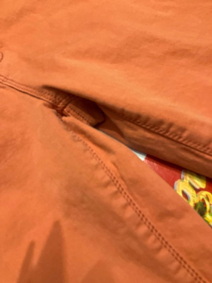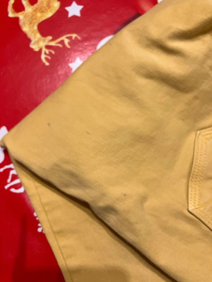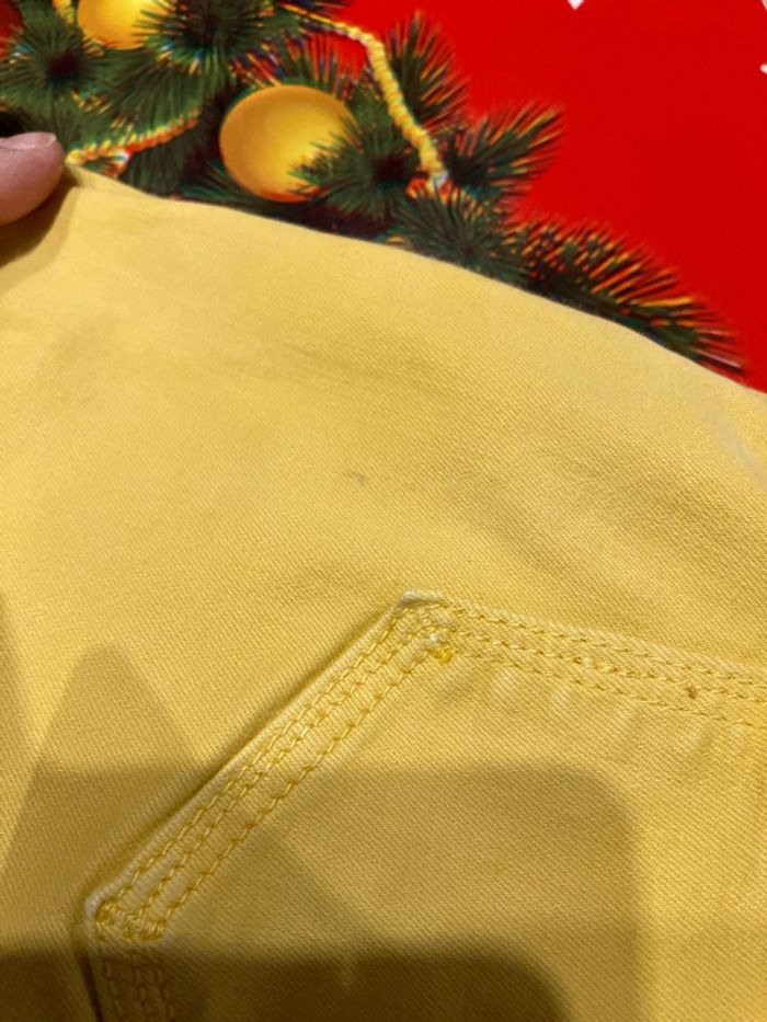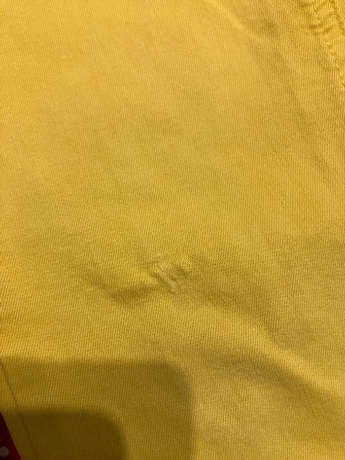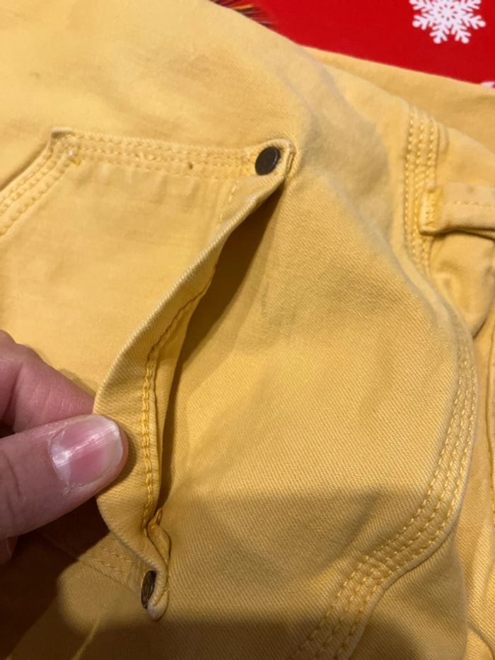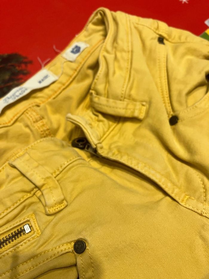 Jeans orange cache cache en bon état n’a plus d’étiquette de taille mais correspond à un S comme le jaune que j’offre en cadeau car à des petites taches