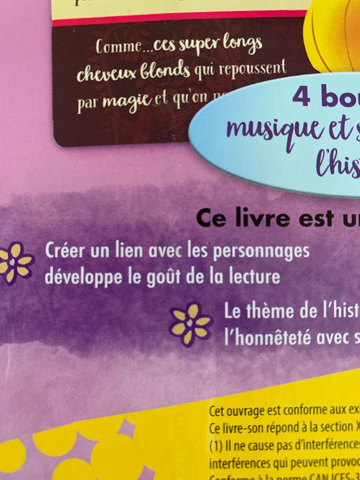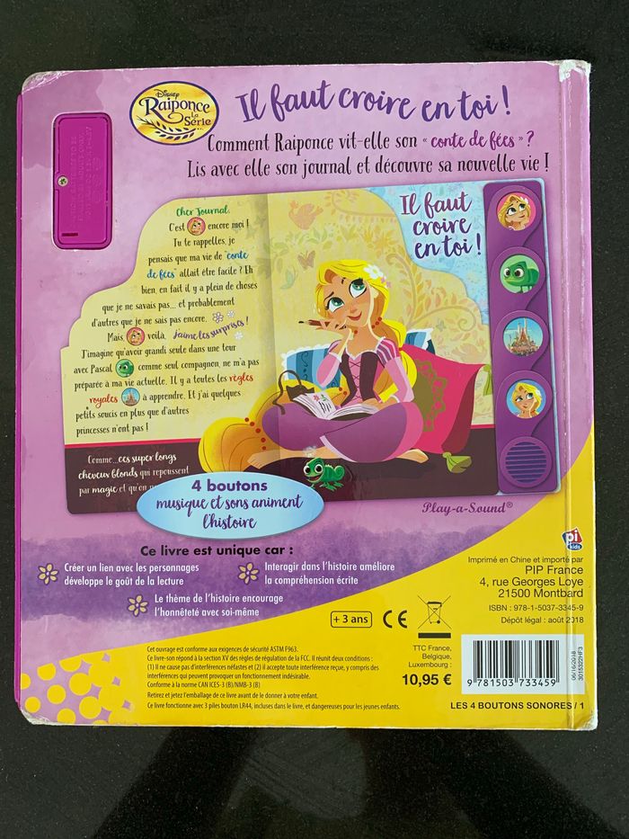 Livre Raiponce musical en bon état mais un peu abîmé sur les coins