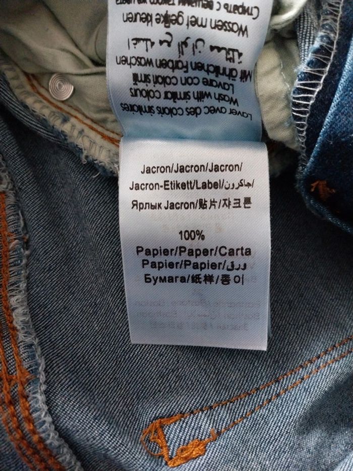 Porté qu'une seule fois Couleur bleu foncé Mesures: Largeur mesure du dos: 31,5 cm Du bouton à l'entrejambe: 21 cm Entrejambes à en bas : 80,5 cm En partant du haut (le milieu du jean ou il y a l'étiquette) en allant jusqu'en bas : 106,6 cm #vetementsfemmepopo242011
