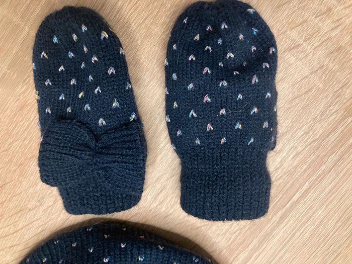 Superbes béret et moufles polaires et laine plur petite fille de 12-24 mois. Tiennent chaud