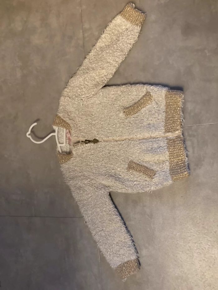 couleur doré et beige très pratique avec la fermeture éclair. comme neuf. Doux au touché