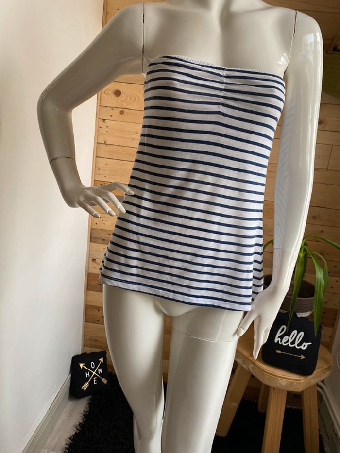 dos nu rayé bleu marine en très bon état soutiens-gorge intégré voir photo 2 cache cache - taille 0 n’hésitez pas à créer un lot pour économiser les frais de ports et activer les réductions 🙂