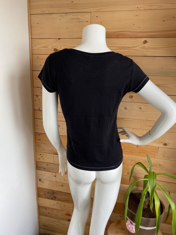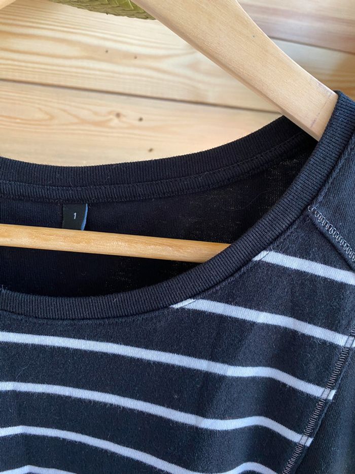 teeshirt noir à ligne blanches très peu mis 100% coton boutique indépendante - taille 1 n’hésitez pas à créer un lot pour économiser les frais de ports et activer les réductions 😊