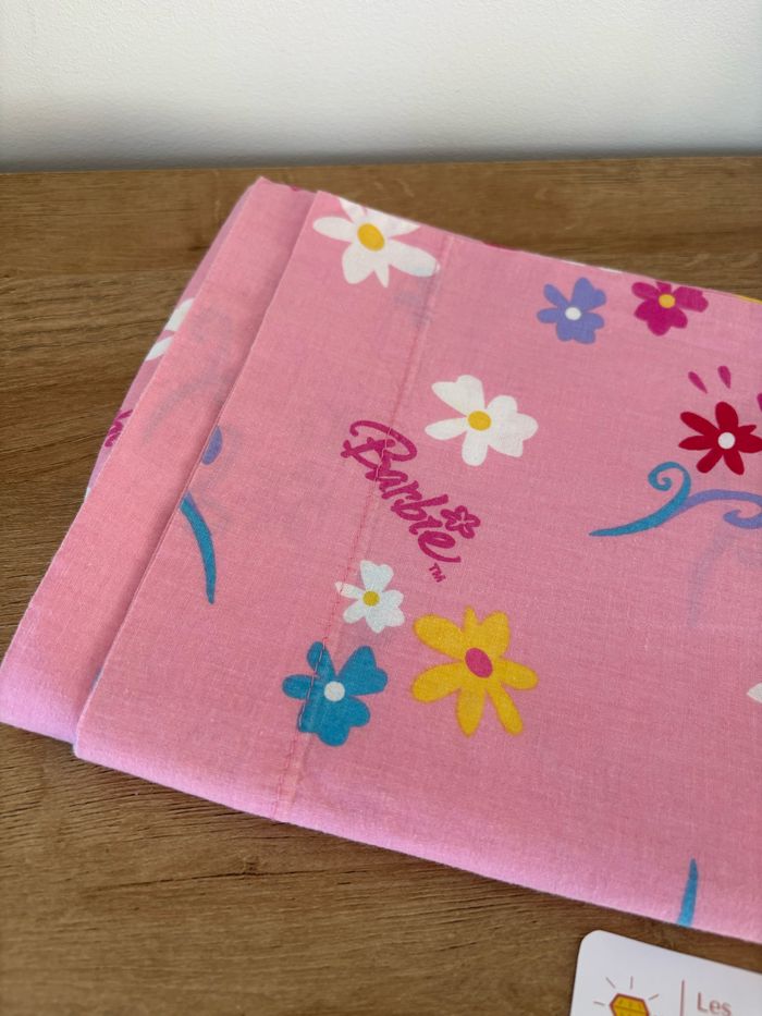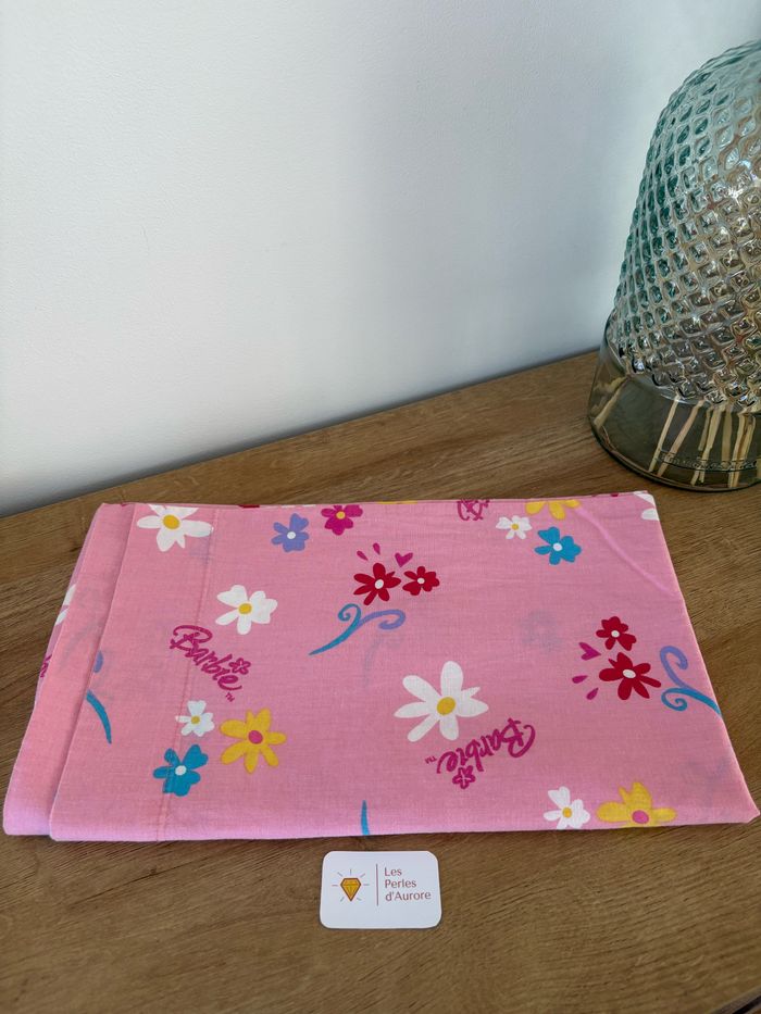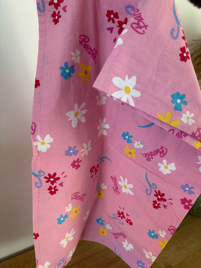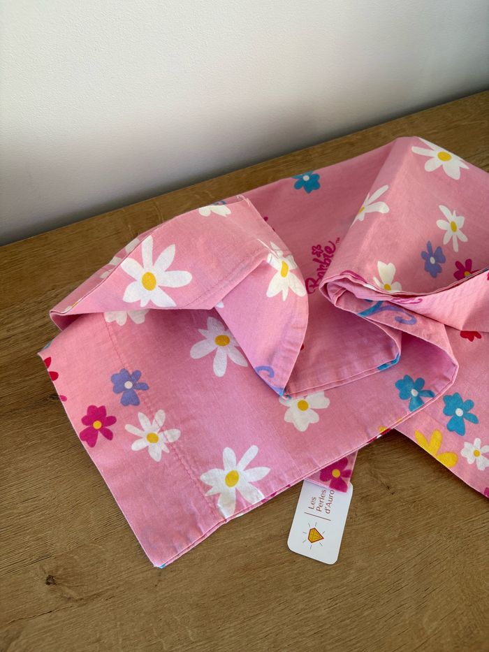 Très jolie taie de traversin barbie Rose motif fleurs Longueur 135 cm Très bon état Propre et lavé