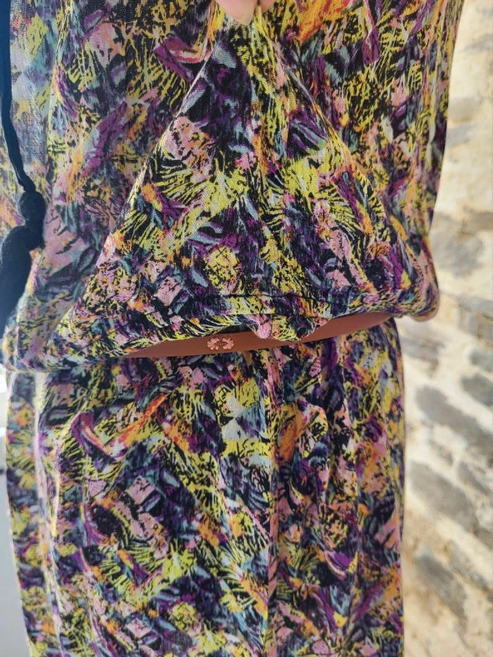 Robe d'été sans manches à motifs violet jaune et noir Bonobo Taille XS ou 36 - photo numéro 3
