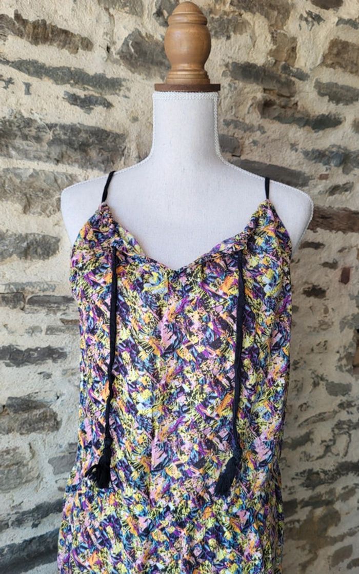 Robe d'été sans manches à motifs violet jaune et noir Bonobo Taille XS ou 36 - photo numéro 2