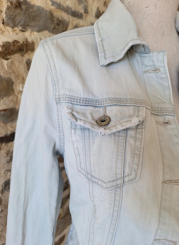 Veste en jean bleue claire délavée Stradivarius Taille 34 - photo numéro 3