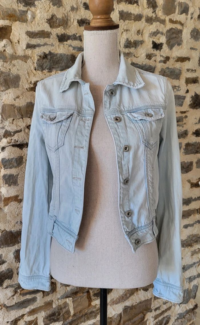 Veste en jean bleue claire délavée Stradivarius Taille 34 - photo numéro 1