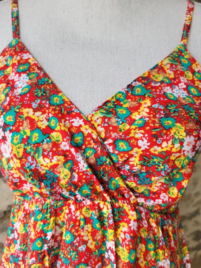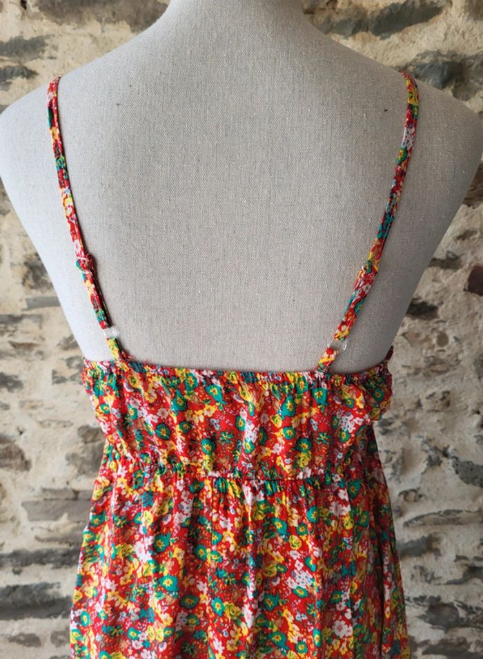 Très jolie robe d'été fleurie dans les tons rouge vert et jaune Quelques motifs irisés La Redoute (étiquette manquante) Taille 34 Taille 35cm Longueur 85cm Extensible au niveau de la poitrine et du dos Bretelles réglables Mélange de coton et viscose: légère, fluide et agréable à porter Très gaie pour l'été 🤗 En très bon état #matka27_taille34 #taille34 #laredoute #robe #été #fleurie #fleurs #rouge #jaune #vert