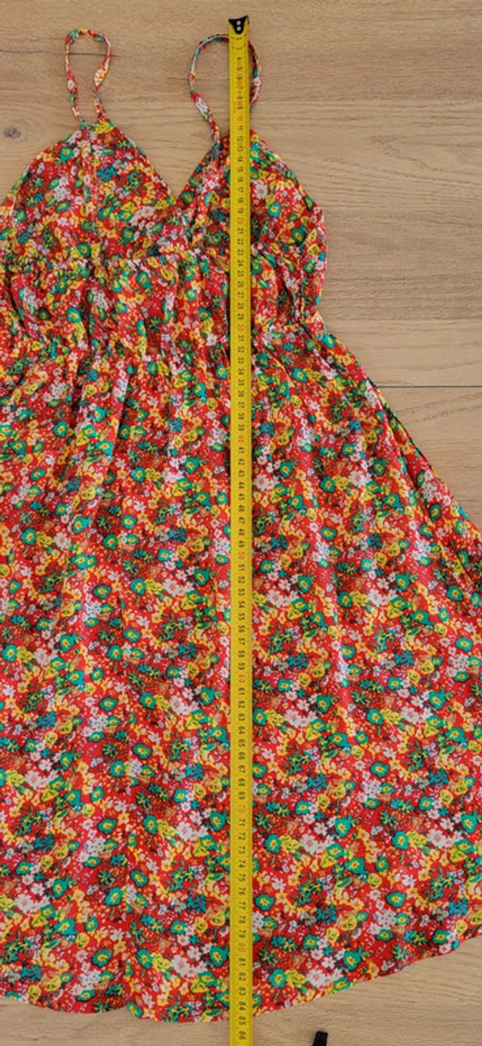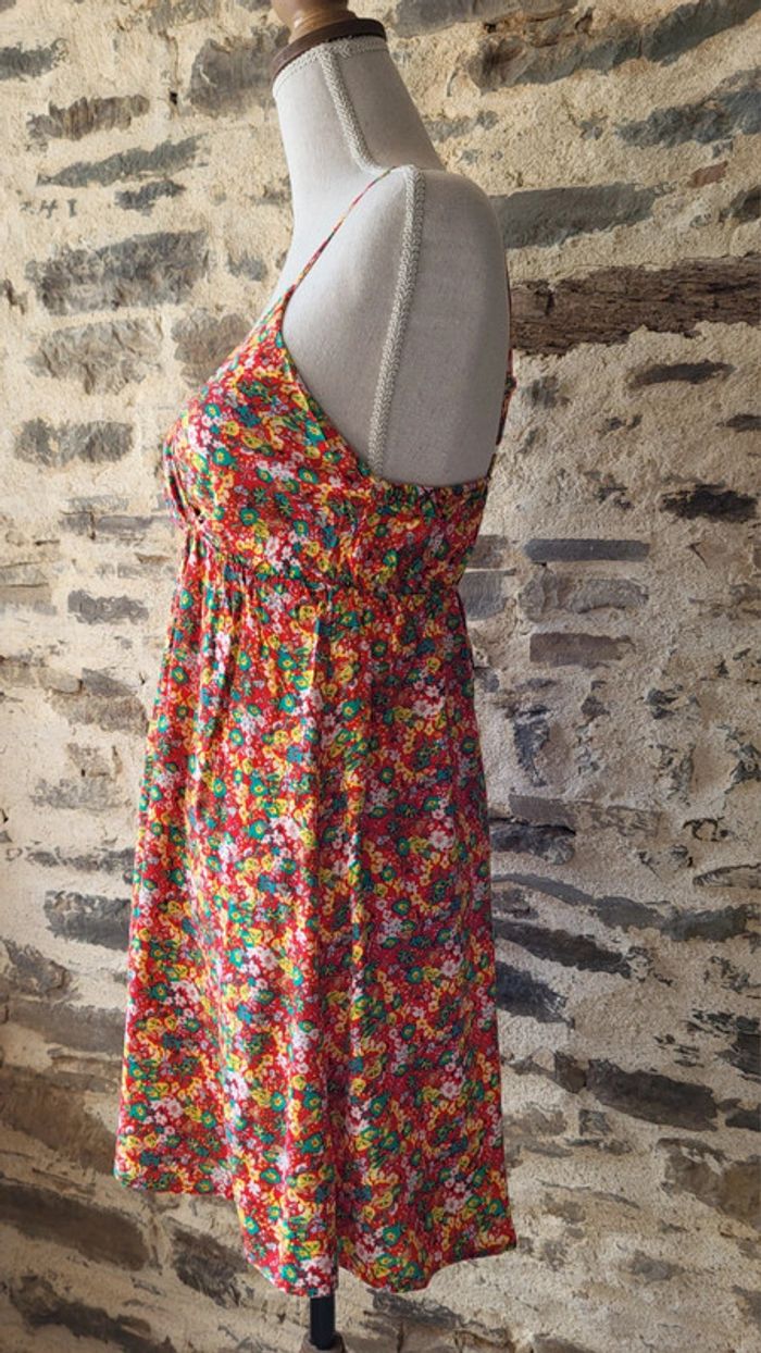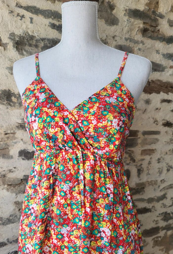 Robe d'été fleurie rouge verte et jaune irisé La Redoute Taille 34 - photo numéro 7