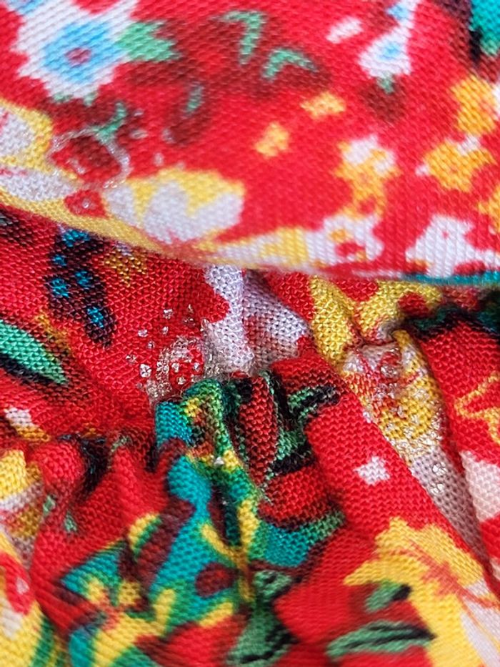 Robe d'été fleurie rouge verte et jaune irisé La Redoute Taille 34 - photo numéro 5