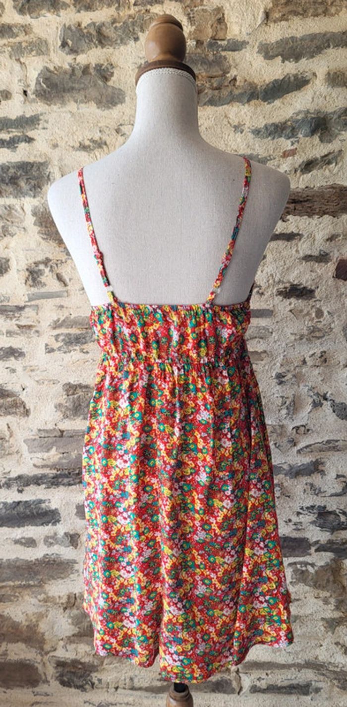 Robe d'été fleurie rouge verte et jaune irisé La Redoute Taille 34 - photo numéro 6