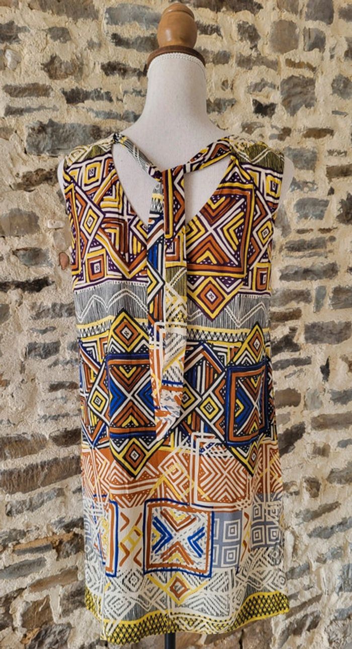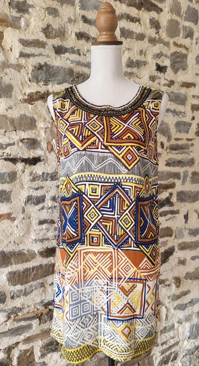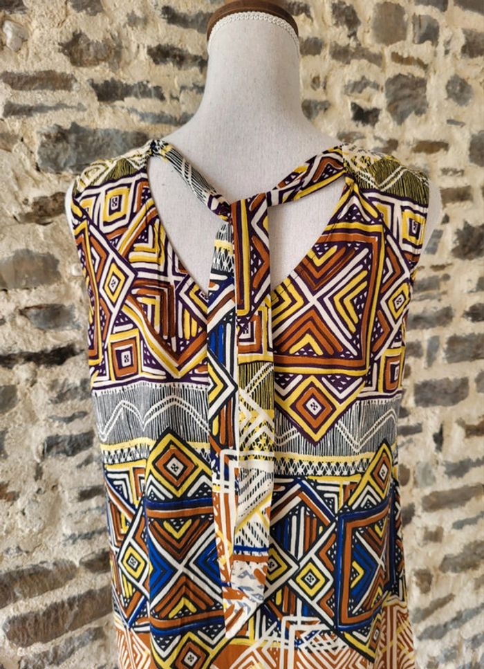 Robe débardeur à motifs ethniques marron jaune bleu Taille 38