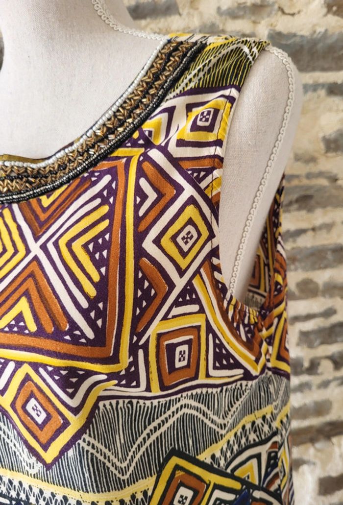 Robe débardeur à motifs ethniques marron jaune bleu Taille 38 - photo numéro 7