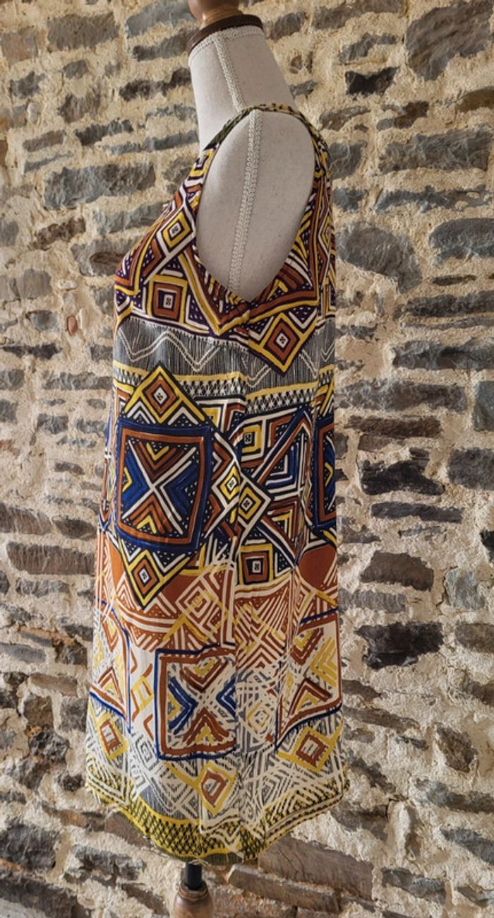 Robe débardeur à motifs ethniques marron jaune bleu Taille 38 - photo numéro 2