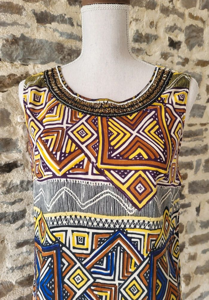 Robe débardeur à motifs ethniques marron jaune bleu Taille 38 - photo numéro 1