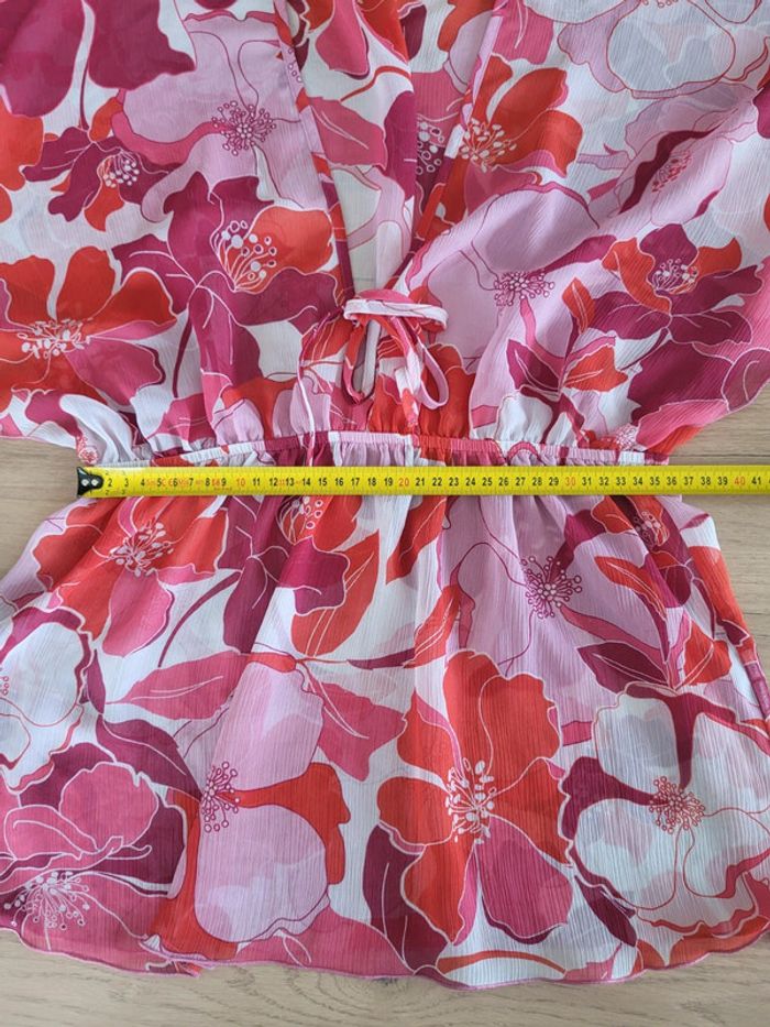 Tunique de plage à fleurs hawaïennes rose fushia et blanc Yessica Taille 36 38 - photo numéro 12