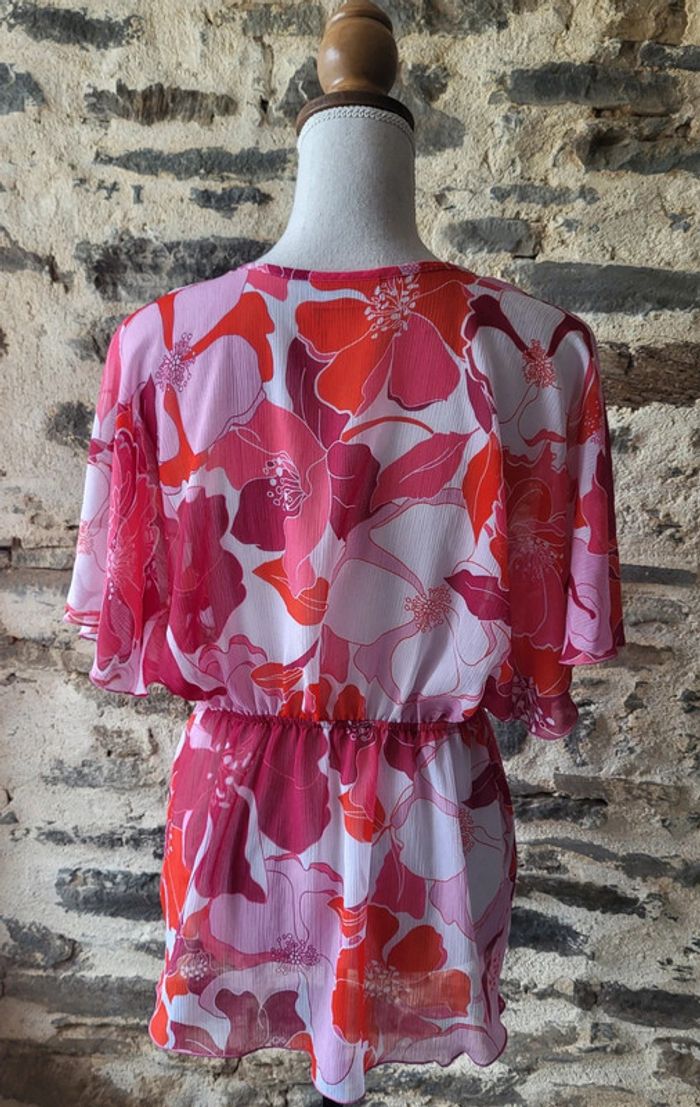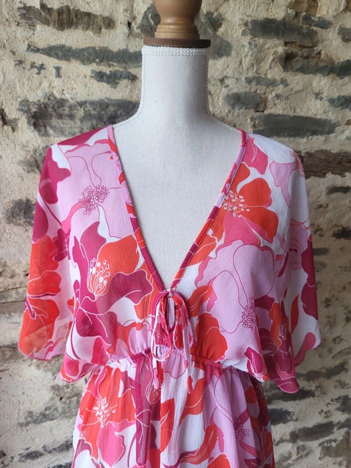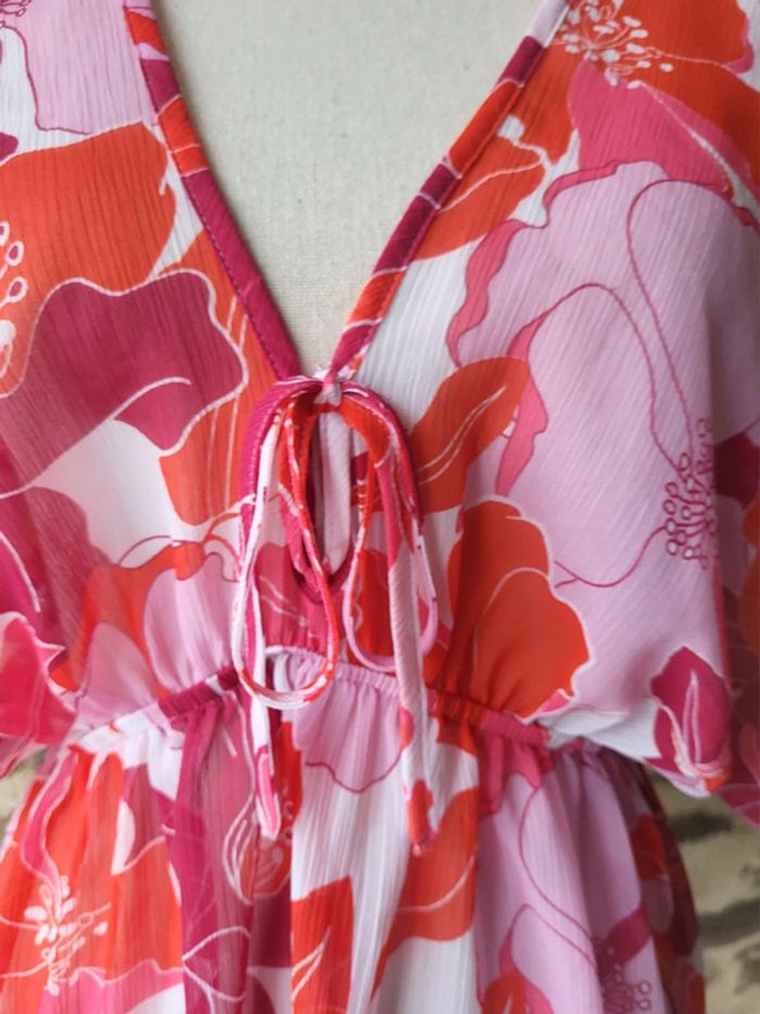 Tunique de plage à fleurs hawaïennes rose fushia et blanc Yessica Taille 36 38 - photo numéro 9