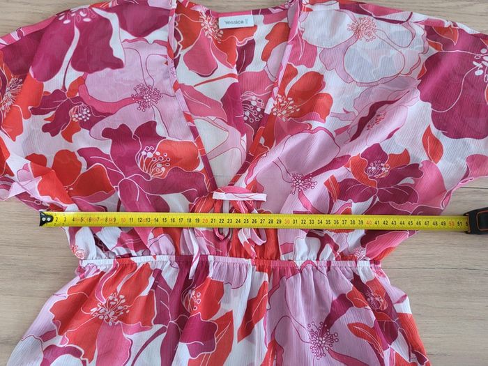 Tunique de plage à fleurs hawaïennes rose fushia et blanc Yessica Taille 36 38 - photo numéro 11