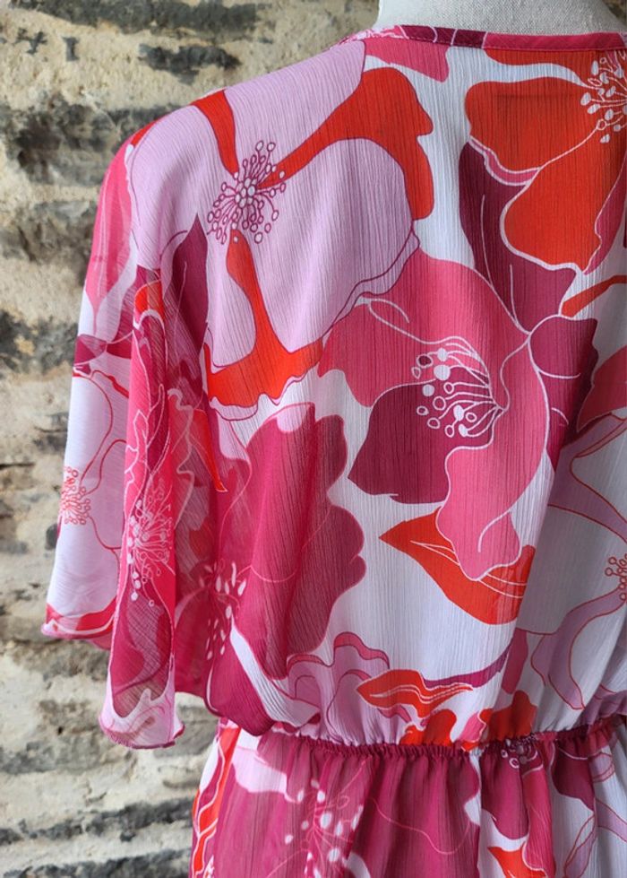 Tunique de plage à fleurs hawaïennes rose fushia et blanc Yessica Taille 36 38 - photo numéro 10