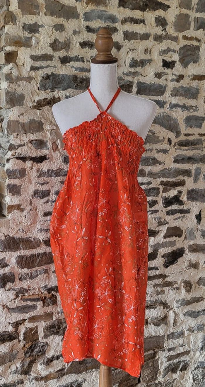 Robe de plage orange avec lien à nouer au cou Taille L XL ou 40/42