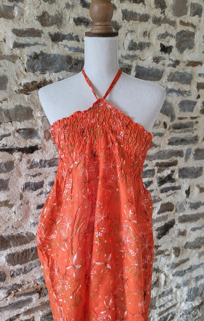 Robe de plage orange avec lien à nouer au cou Taille L XL ou 40/42 - photo numéro 2