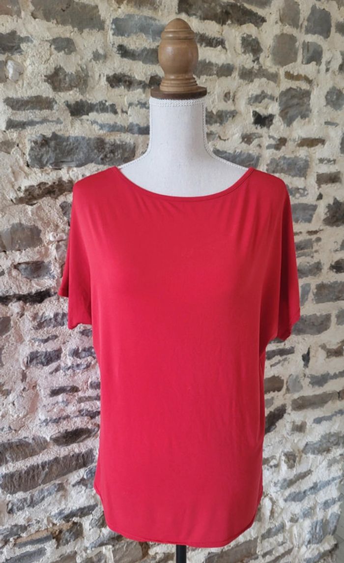 T-shirt blouse manches courtes rouge Bréal Taille 44 - photo numéro 1