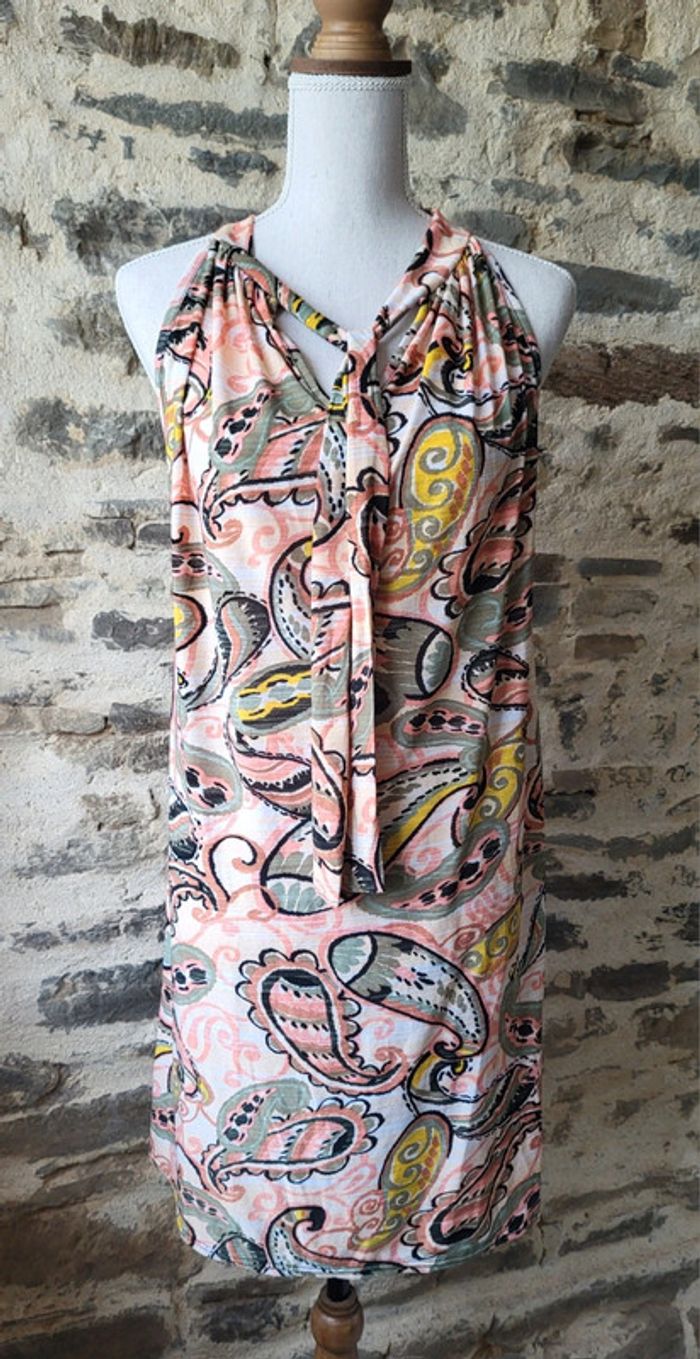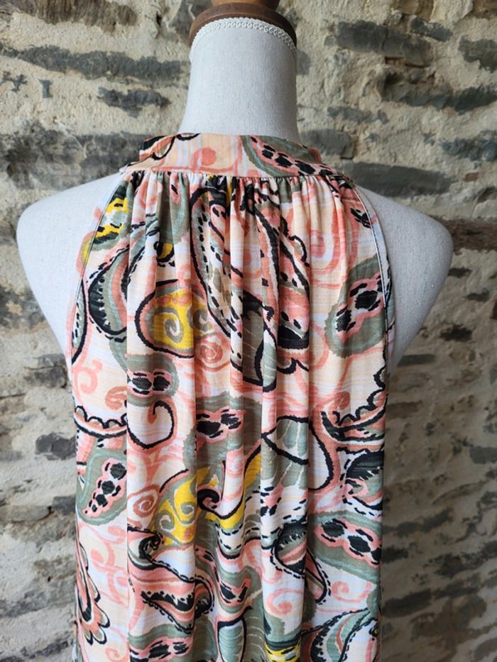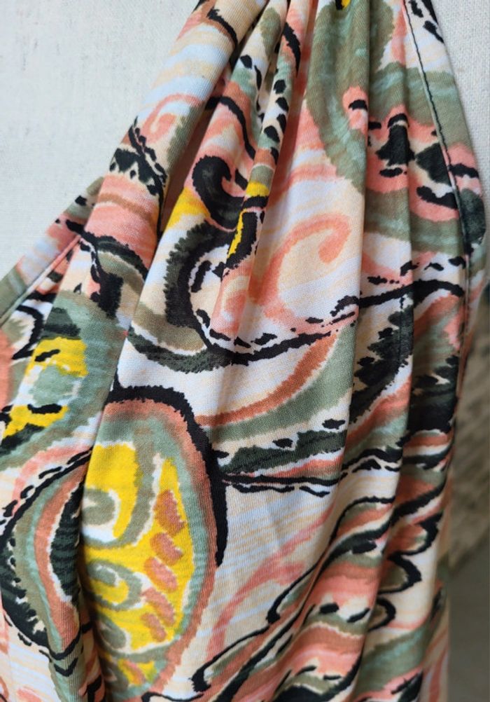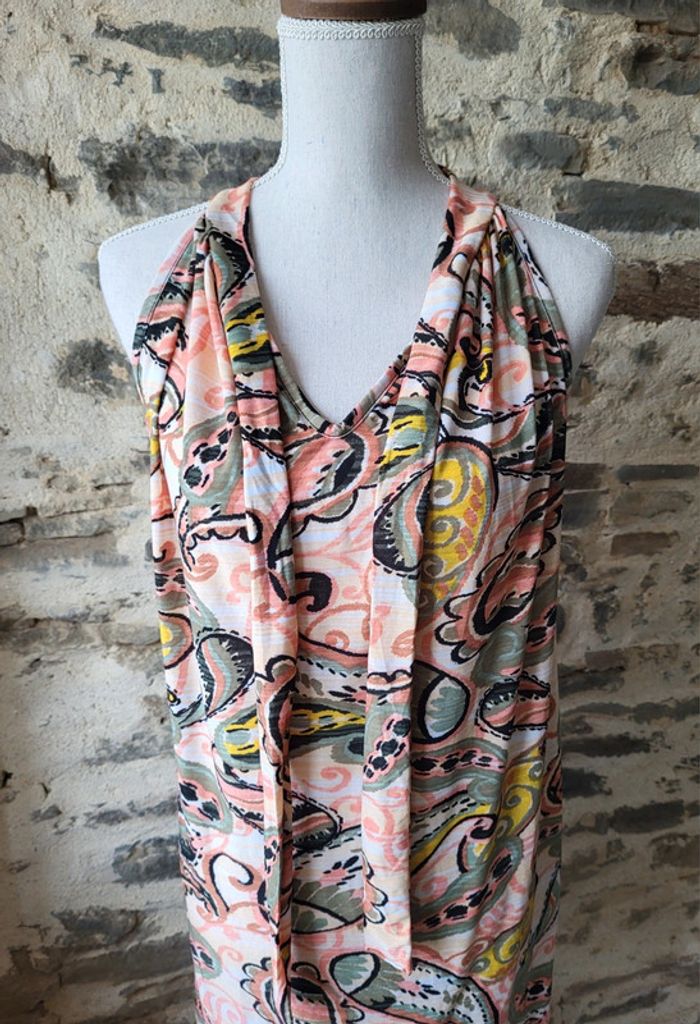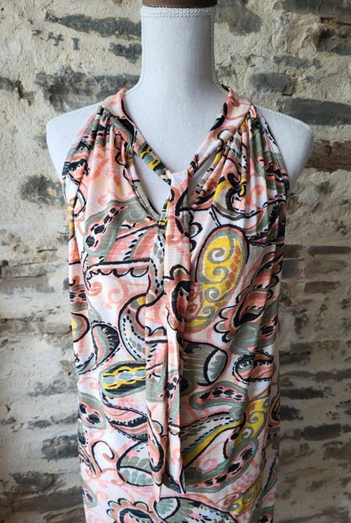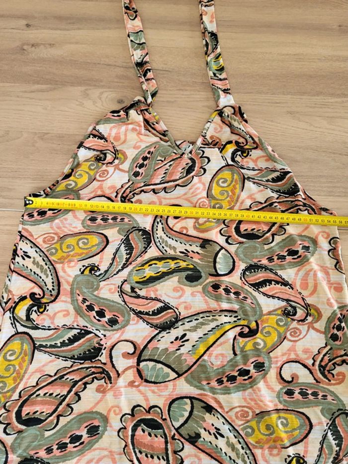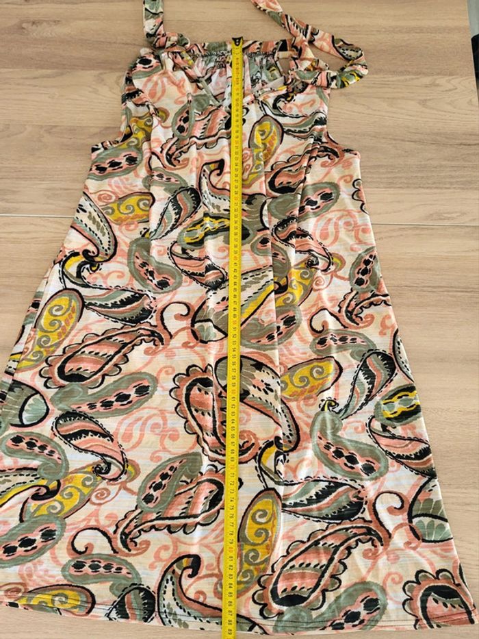Très jolie robe d'été à motifs kaki rose terracota jaune, épaules dénudées Lien à nouer au niveau du col ou à laisser pendre La Redoute (étiquette manquante) Taille 40 Aisselles 55cm Longueur 89cm Se porte assez ample, vérifiez les photos des mesures à plat, selon la façon dont vous voulez la porter peut convenir à différentes tailles Légère, fluide et agréable à porter Contient de l'elastane, extensible En très bon état #matka27_taille40 #taille40 #laredoute #robe #rose #jaune #kaki #terracota #été #epaulesdenudées #motifs