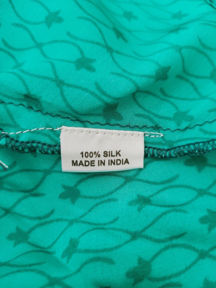 Très jolie nuisette verte et dorée à motifs Taille S/M ou 36 100% soie Aisselles 47cm Taille 39cm Longueur 90cm Bretelles réglables En très bon état #matka27_taille36 #taille36 #nuisette #soie #lingerie #vert #doré