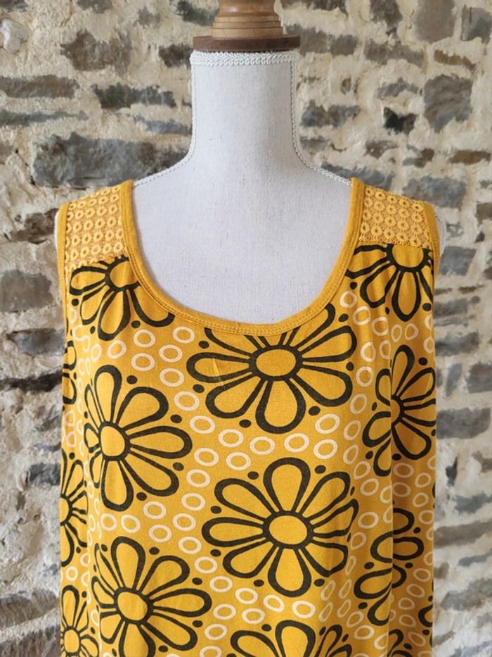 Débardeur jaune moutarde à grosses fleurs Made in Italy Taille 44 - photo numéro 1