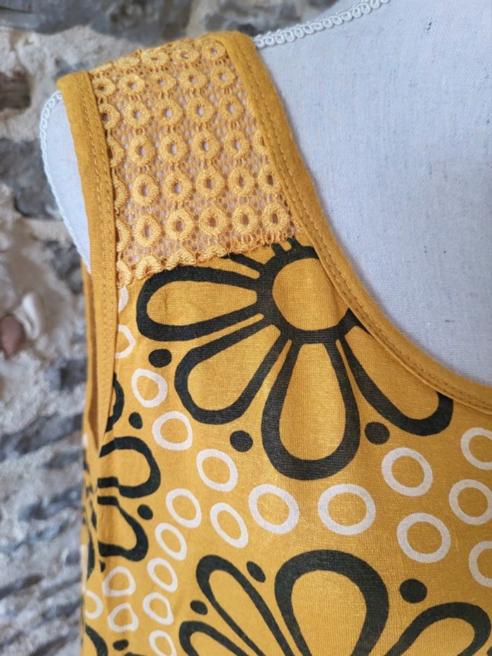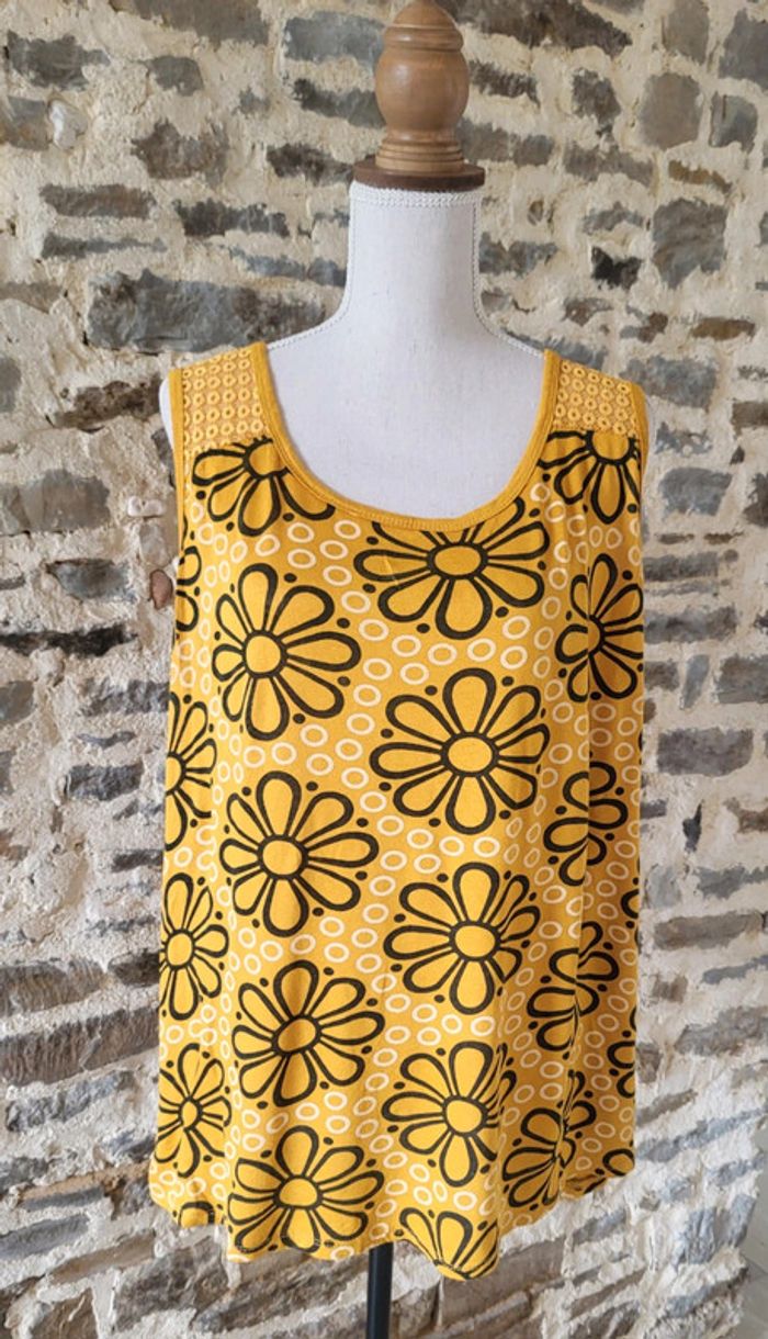 Débardeur jaune moutarde à grosses fleurs Made in Italy Taille 44