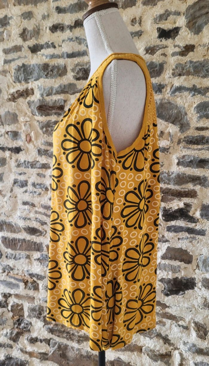 Débardeur jaune moutarde à grosses fleurs Made in Italy Taille 44 - photo numéro 3