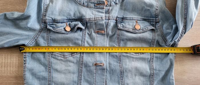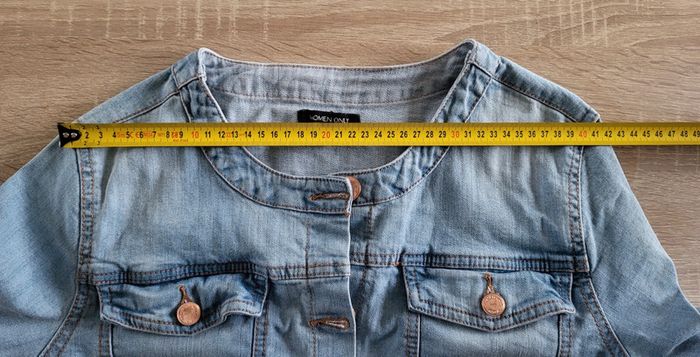 Veste en jean bleu clair Women Only Taille 40 Voir photos des mesures à plat : Carure 41cm Aisselles 50cm Longueur 53cm Effet délavé d'origine En très bon état #matka27_taille40 #taille40 #womenonly #vesteenjean #bleu #clair #délavée #sanscol #colrond