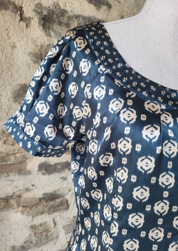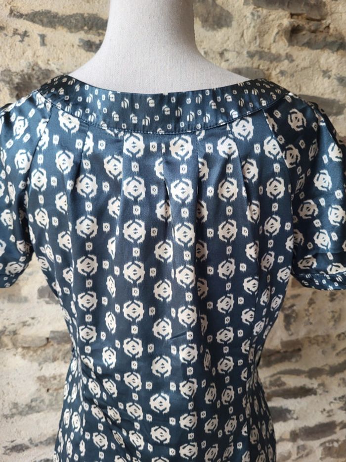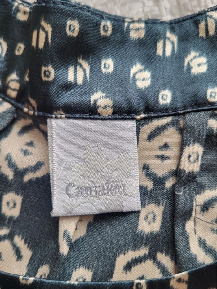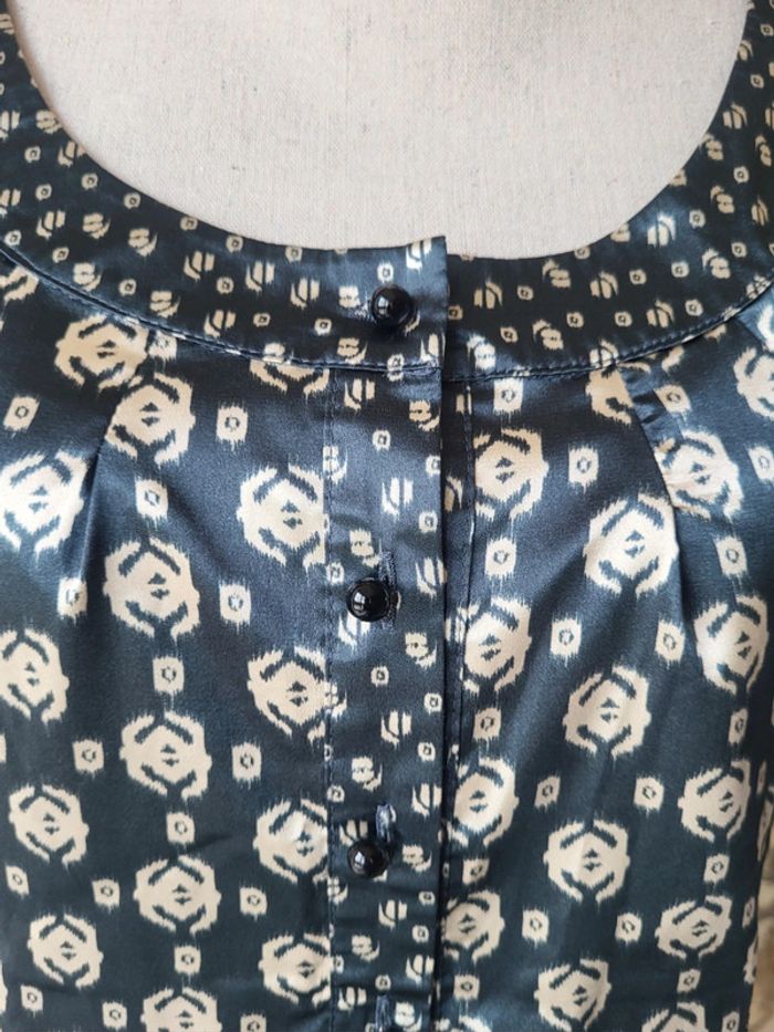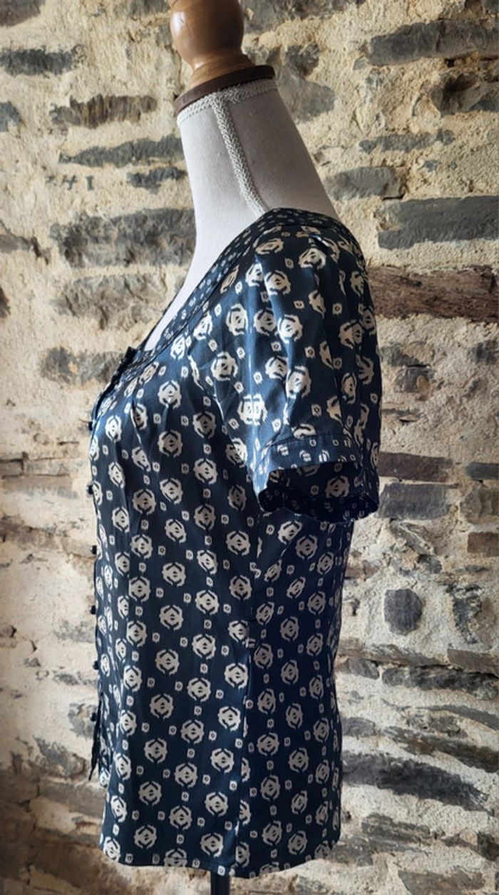 Très jolie blouse manches courtes à motifs gris foncé écru Camaïeu Taille 42 Effet satiné Très belle En très bon état, bouton de rechange #matka27_taille42 #taille42 #camaieu #blouse #manchescourtes #gris #écru