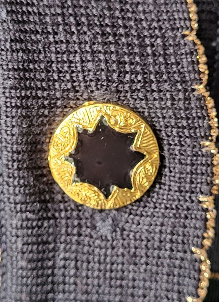 Gilet léger style blouse vintage motifs fleurs en relief noir doré bleu Taille 40 - photo numéro 4