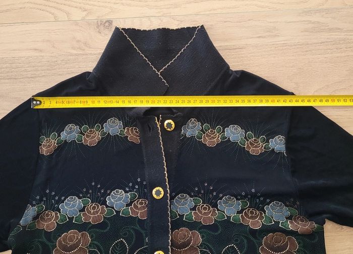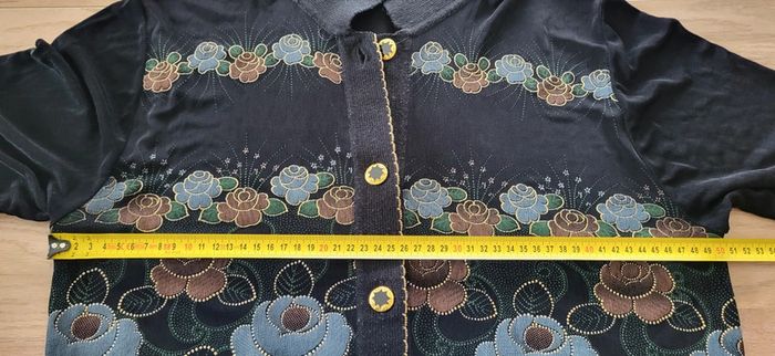 Gilet léger style blouse vintage motifs fleurs en relief noir doré bleu Taille 40 - photo numéro 13