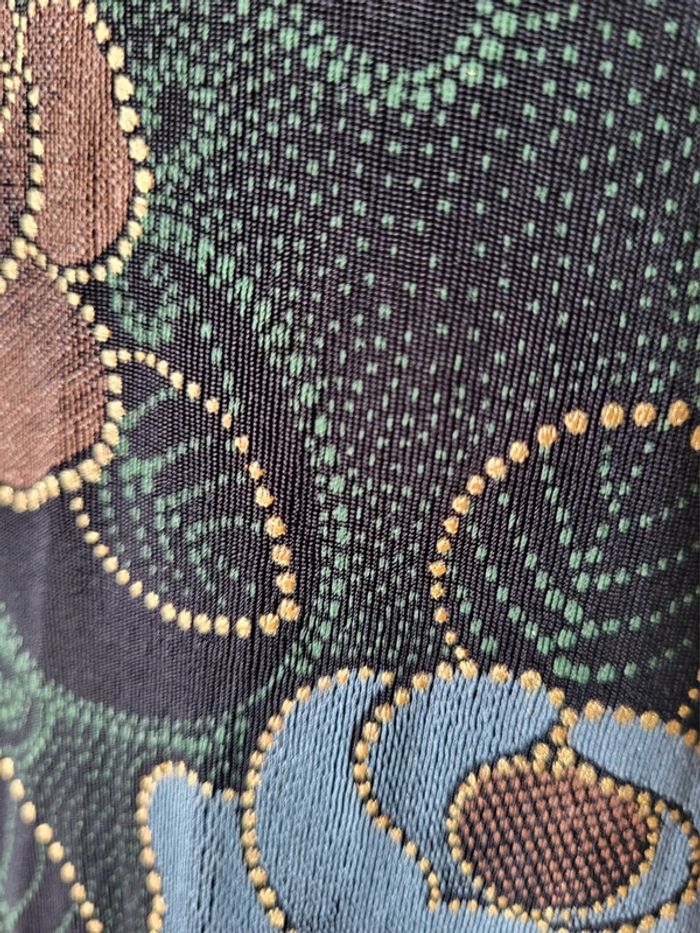 Gilet léger style blouse vintage motifs fleurs en relief noir doré bleu Taille 40 - photo numéro 5