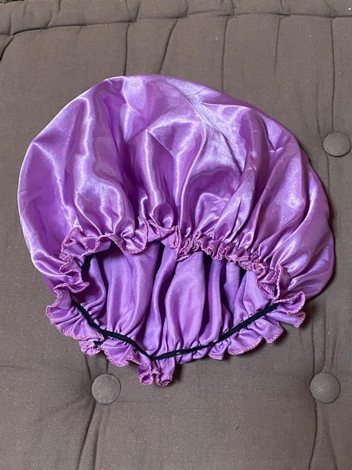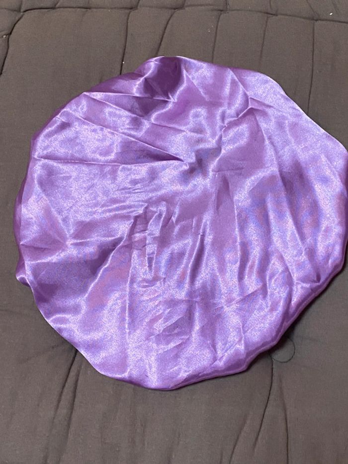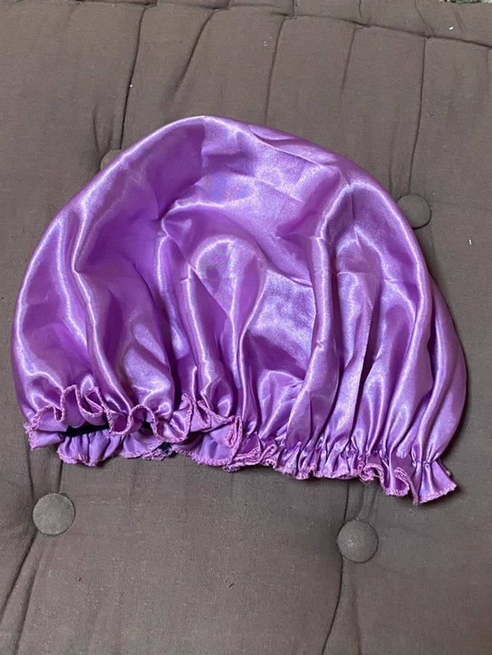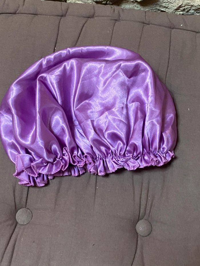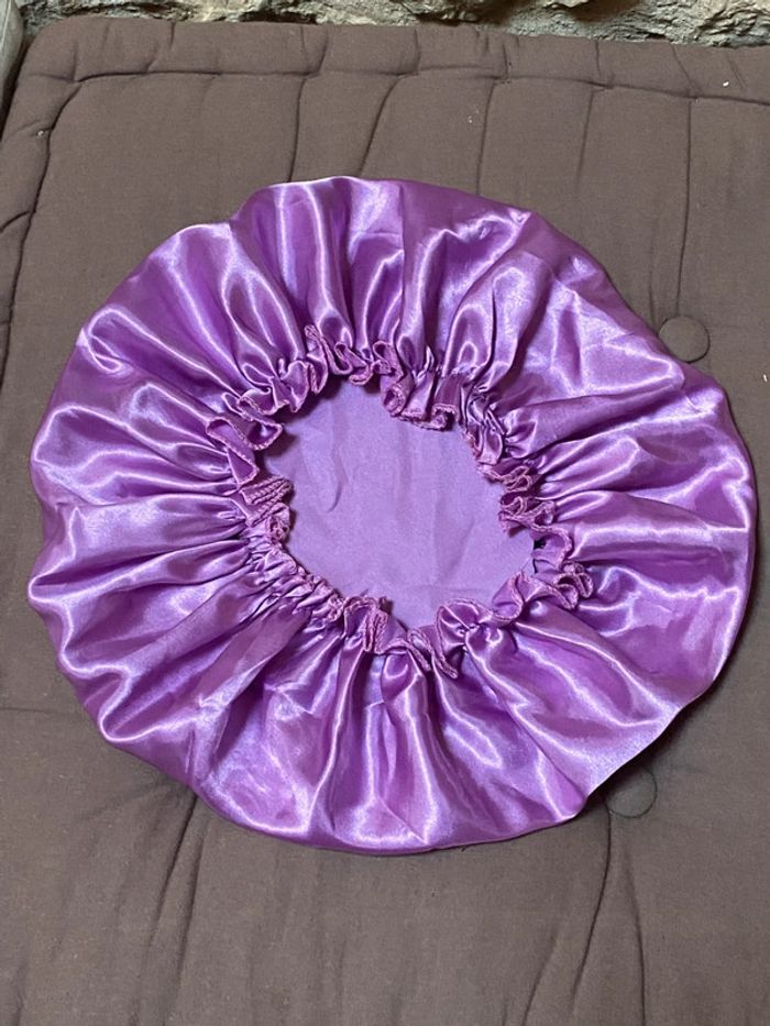 Bonnet de nuit doux, style satin, violet clair brillant. Taille unique, avec élastique