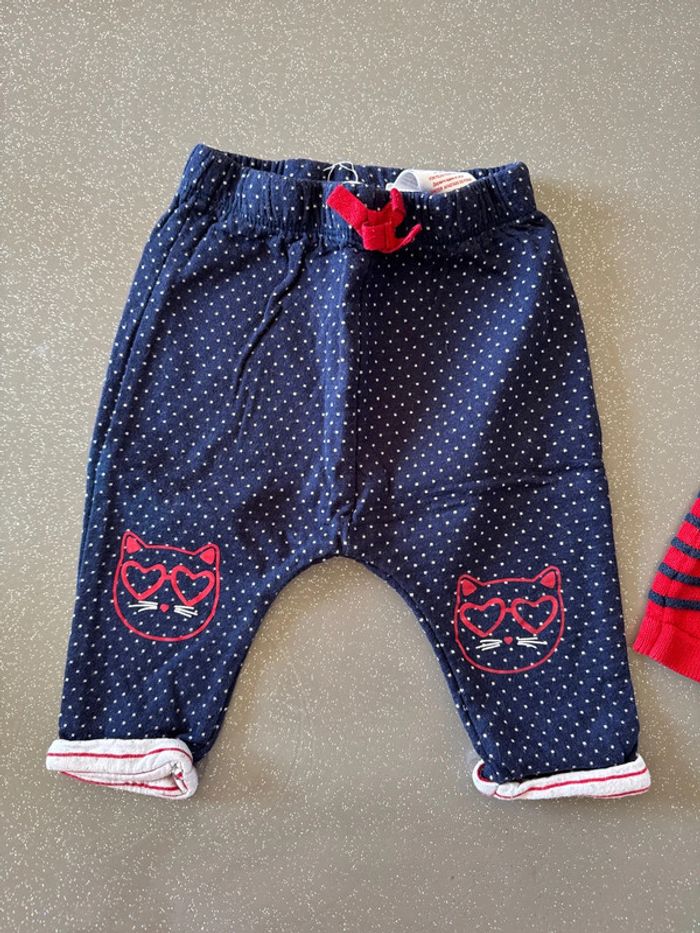 Petite tenue pantalon/robe bleu et rouge 1 pantalon DPAM - 3 mois - coton 1 robe Minnie Disney - 3 mois - coton #jamaub3moisfille #bebe3mois